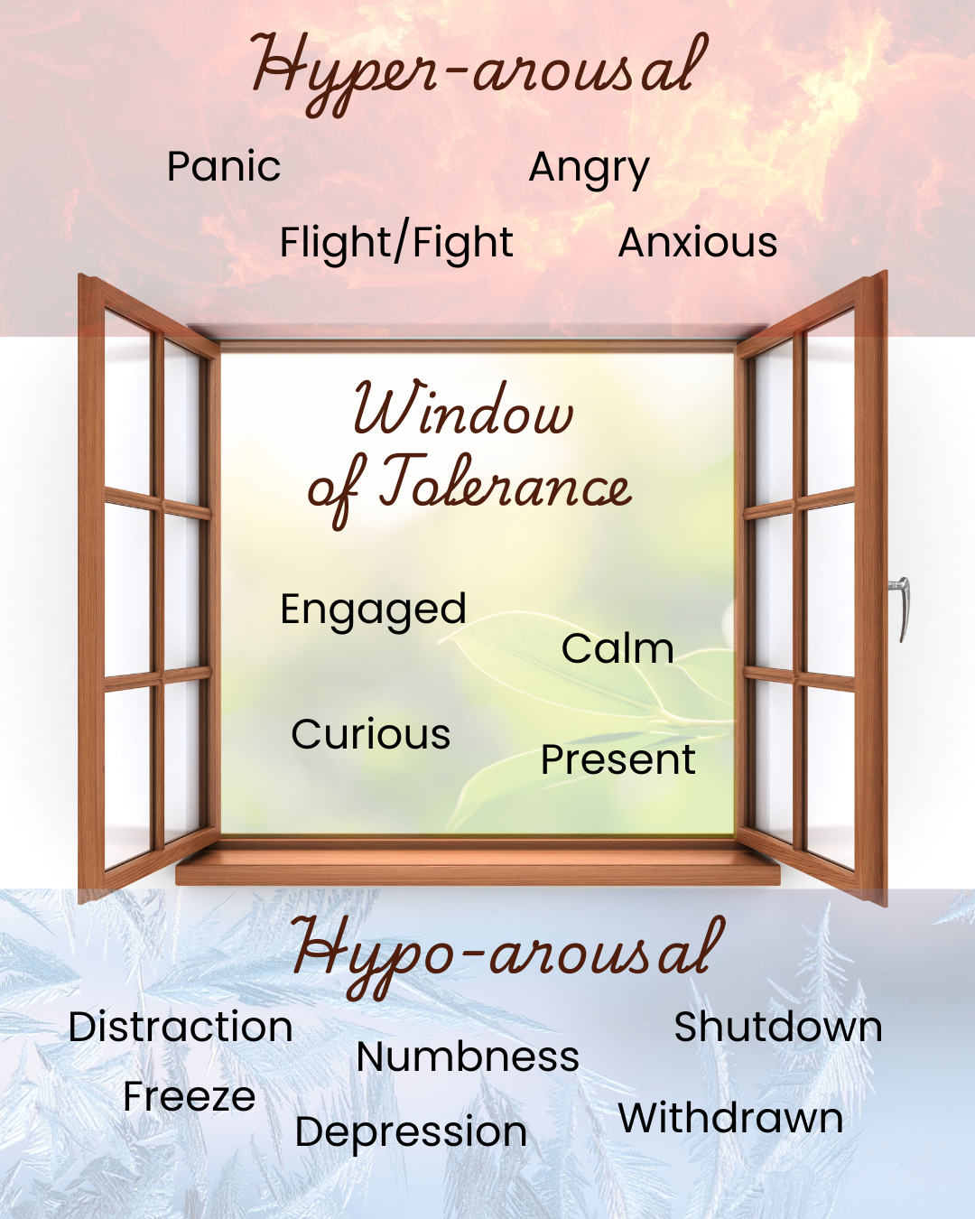 Think of your capacity to handle uncomfortable feelings as a "Window of Tolerance" (Siegel, 2012). When you’re inside that window, you can think clearly, stay present, and handle stress without feeling overwhelmed.